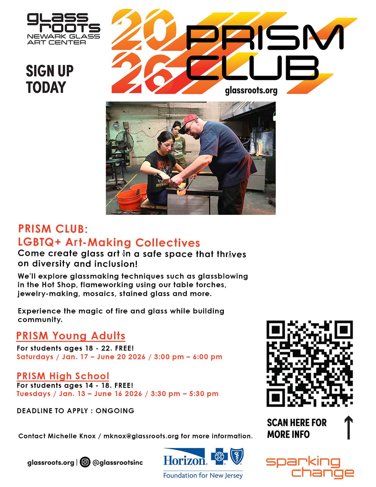 Join the PRISM Club to create glass art in a safe space for diversity, inclusion and creative energy! PRISM Club meets weekly to explore glassmaking techniques including glassblowing, flameworking, jewelry-making and design, mosaics, stained glass and more. Facilitated conversations and workshops, led by our partner mental health providers, will also be integrated into the sessions. Experience the magic of fire and glass, and build community at the same time!